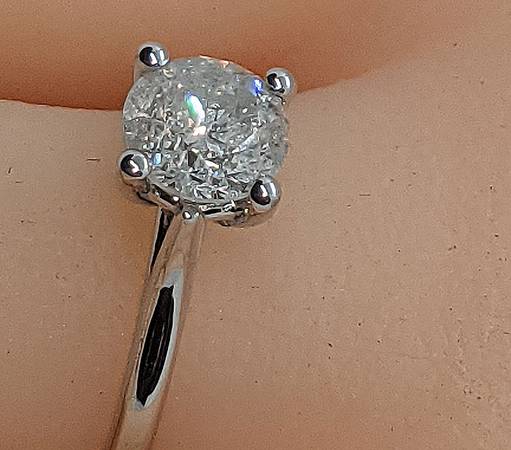 Offered for your consideration: EGL Certified With paperwork, 1.44 ct Solitaire Diamond I2 Clarity and G color (very-very good color) Ring With 14k White Gold. First let me mention (as you can see in the paperwork) the diamond is all natural, it has not been color or clarity enhanced (which means it has not been tempered with in any way, as natural as it can get). I have a lot of photos showing the ring from all different sides. Let me say, if you should need slight ring size adjustment, it can be done. As you can see in the photos certification for the stone was done in August 2011 and it was appraised at $6780 (today it will be much more, as far as I know to curb the inflation, diamods prices go up around 3% each year). I am sure photos will tell the rest. If you should have additional questions, please do not hesitate to ask. To purchase please contact at show contact info