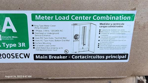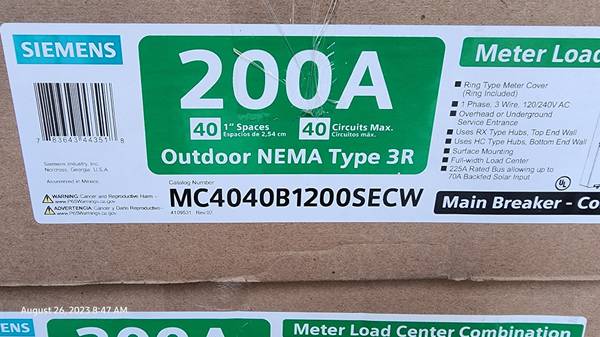 200 Amp Siemens Main panel. Wide panel.40 full space. - materials -...