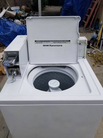 Kenmore coin operated commercial washer heavy duty Price for lot $2:00 works great very clean warranty for 1month including installation Dimensions width:27 Depth:29 Height:36 delivery available.