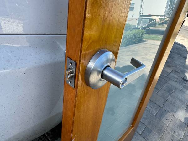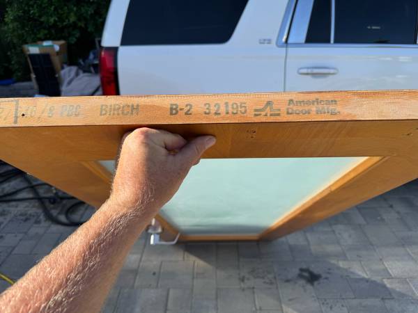 1 lite glass door. Great shape. Straight. Has a few screw holes on top and a couple on bottom where there was a door stop. 30x79x1-3/4 Will fit into standard 30x80 opening .