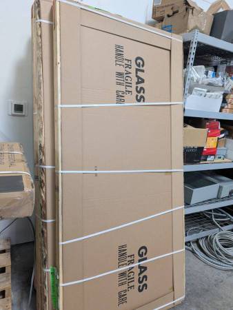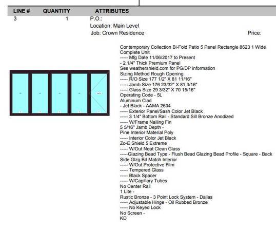 All glass panels sealed in unopened boxes. Brand new and in the original box. Never installed. Beautiful Weathershield patio door from Weathershield's Contemporary Collection. Please let us know if you have any questions or would like to arrange a viewing. Ordered the wrong size. Very high quality. We ordered for $18.5K. 55% off sticker price!