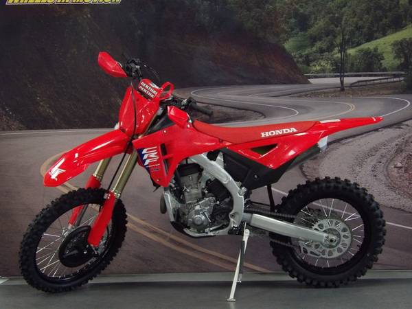 Like our factory racebikes, our CRF competition lineup features the vertically stacked CRF logos that look fast even sitting still.