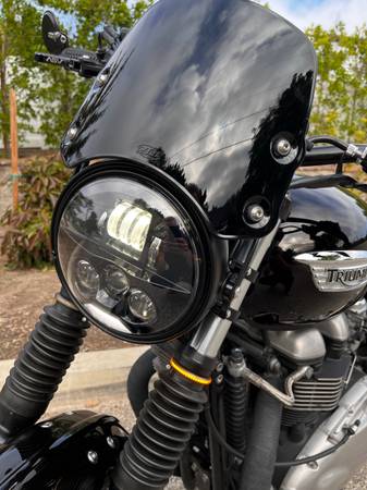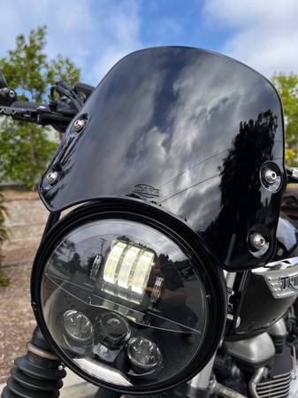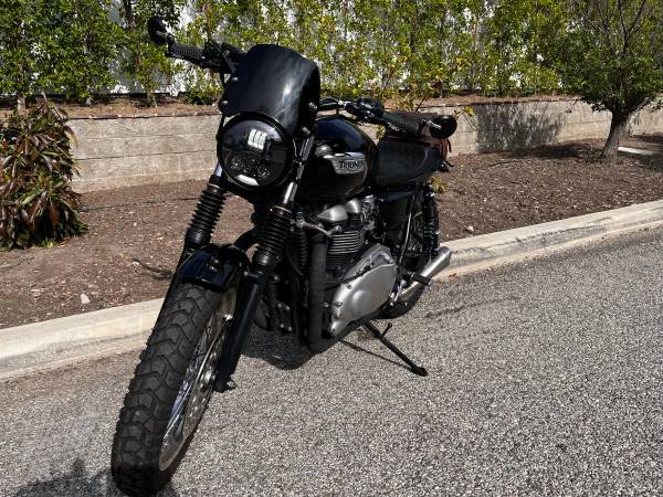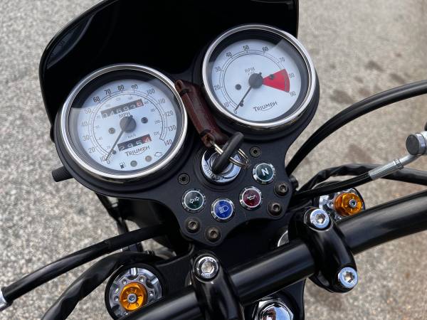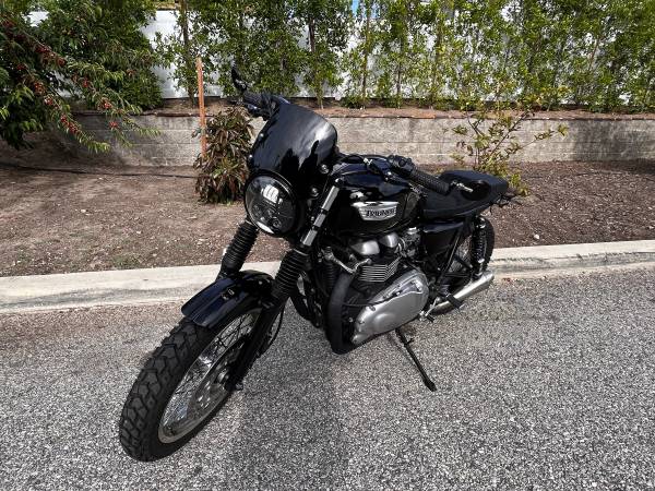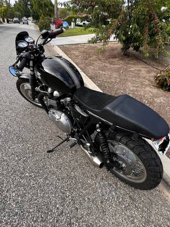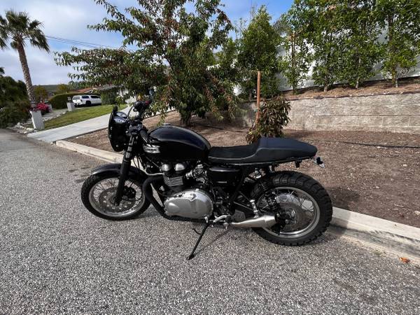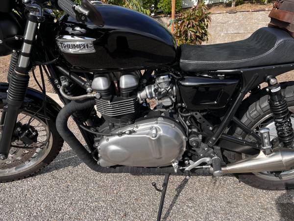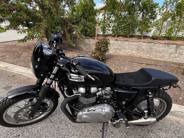 Triumph Thruxton 900- Thunder Road Cycles in West Hollywood did the build- Suspension, lighting, leather/suede seat, exhaust, mirrors, levers. Needs nothing and a blast to ride! Beautiful and sound. Just serviced. Only 4900 miles. Fuel injected. $6,700 Call Grant @ 8one8-259-99one2