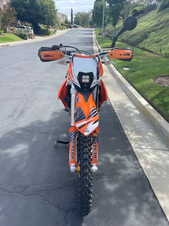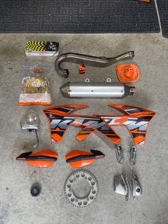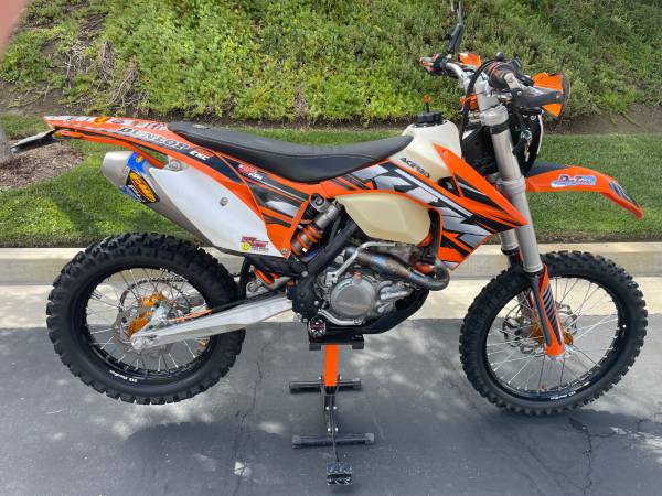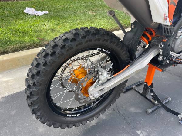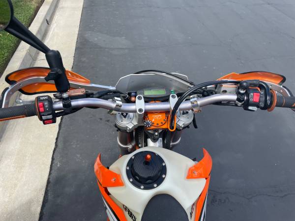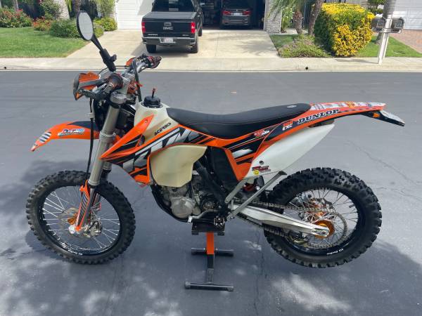 2013 KTM 500 EXC F dual sport bike for sale. Runs great. We’ll maintained. Highly modified with the following aftermarket goodies worth over $3000. Faster USA/DID Dirtstar wheels, Acerbis 3 gallon tank, FMF Mega Bomb titanium header, FMF F4.1 Exhaust, GP-4 Stabilizer, Re-geared with Dirt Tricks sprocket and Regina chain, Baja Designs head lamp, Seat Concepts seat, Fast Company pegs, Double Take mirror, KTM bark busters, and flag mount. Relatively new MOTO Z tires with ‘fatty’ on front. New OEM clutch. A bunch of extra parts including a paddle tire. Registration thru July 2026. Contact Dave.