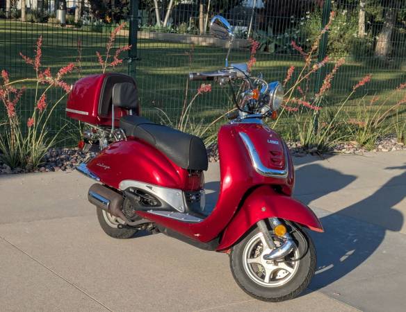 Lance vintage 150cc gas scooter. Approx 65mpg, cheap to run and insure. Registration paid until June 2026. 5436 miles. Runs great. New battery and oil change. $790 cash. Clean title in hand.