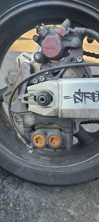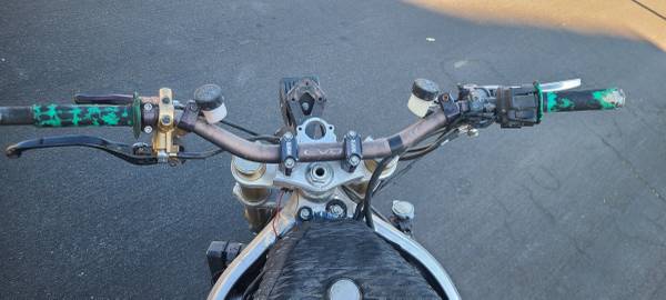 Custom bars and clamps, custom dual rear brake calipers for rear hand brake. Crash cage front and rear. Custom rearsets. Custom tank, custom rear seat. 06 600rr forks brembo caliper, Racing headers, Racing muffler and much more. Serious buyers only call 818.855.729two