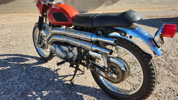 '68 Kawasaki Samurai, twin cylinder, rotary valve induction, 11315 miles. Complete bike, not running but kicks over with compression, been in storage for 20 plus years. It will need a full service/ tune up at minimum to be road worthy, such as the tank & carbs cleaned, new battery, etc. It has a clean title. Firm on $1,000. Located in Las Vegas, NV.