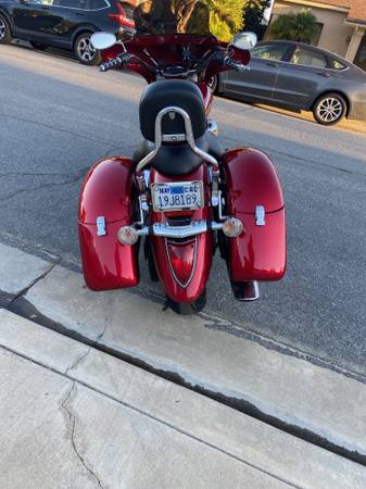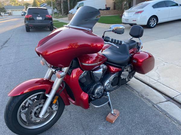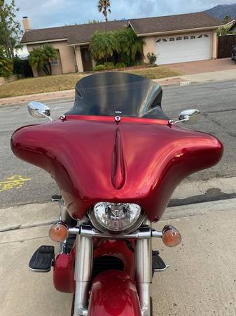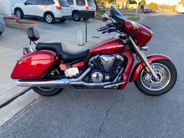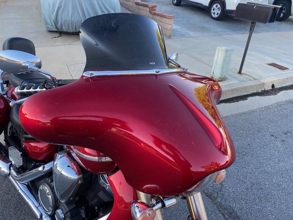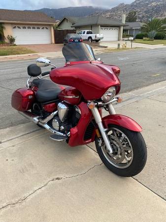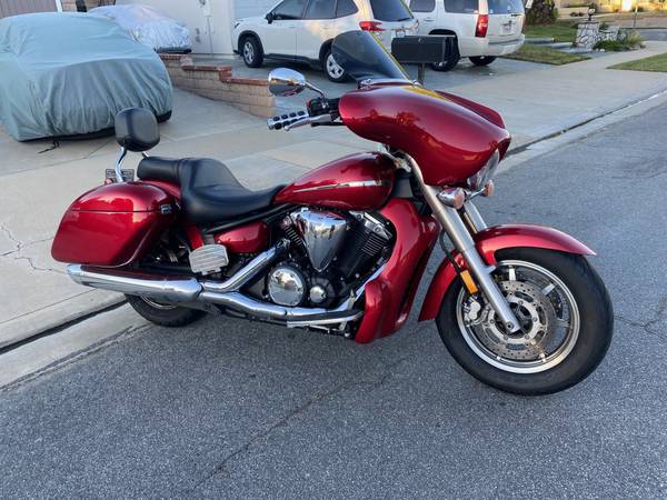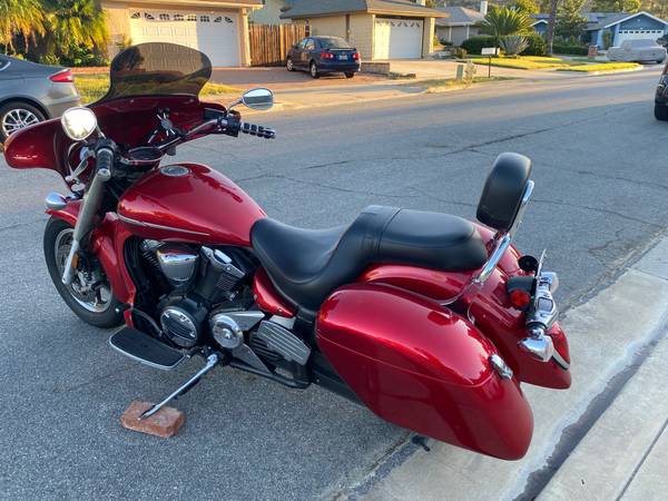 2007 Yamaha V Star 1300. Many custom features make this bike look a lot like a Harley Bagger. Full fairing, saddlebags and radiator shroud, all painted to match the factory color. Custom seat by JP with dual density foam and nice perforated covering. Factory backrest with Cobra passenger floorboards with custom bracket to clear the bags. It is a Touring model, so it came with front floorboards and the heal and toe shifter. ECU has been flashed by Ivan to get rid of the notorious bucking at lower speeds. USB charging port added. Oil changed regularly, tires still have plenty of tread and the battery is only about a year old. It's not a garage queen because I have ridden it a lot, so it has a few nicks here and there in the paint on the shroud, fairing and bags. Starts every time, runs great - just like you'd expect from a Yamaha. Must see to appreciate, the pictures don't really do it justice,