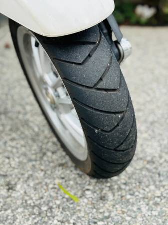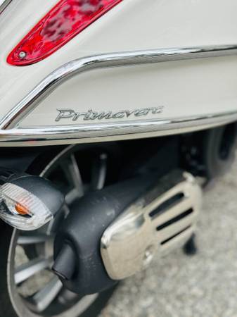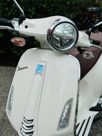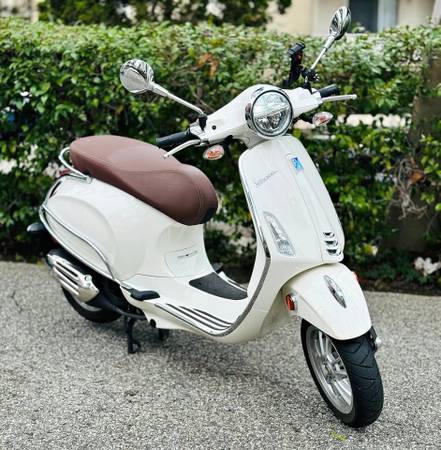 Beautiful white finish with a brown leather seat and chrome details. Runs perfectly and feels brand new.