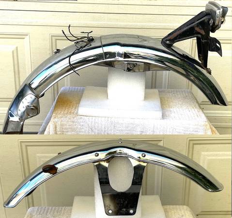 Nice, straight, chromed original early Honda 450 fender set. With tail light. Not perfect but very nice for your classic Honda. I have a load of other vintage CB450 & CL450 parts on other ads on...