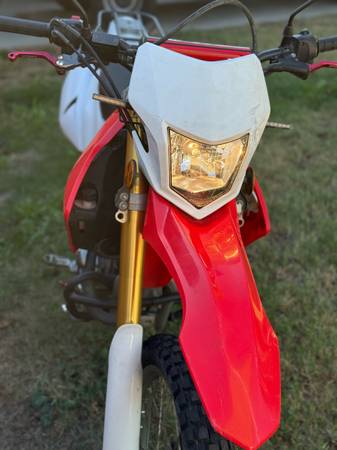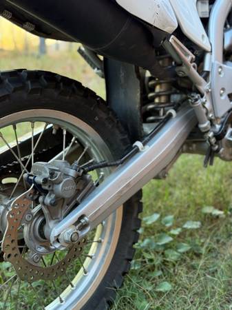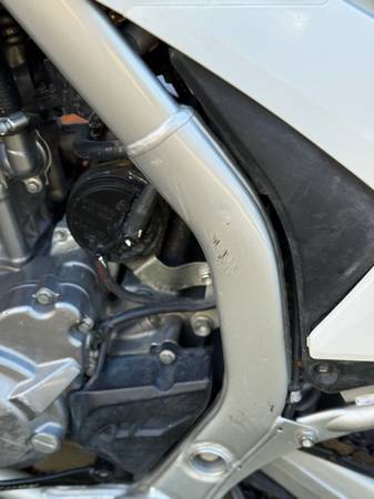 Otherwise stock , starts right up and runs amazing. Brakes great lots of life left. Was used as a light trail bike and has had its drops and tip overs but nothing crazy and no crashes.