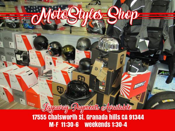 Motorcycle helmets and safety gear special decals Brand new helmet gloves jackets and more.