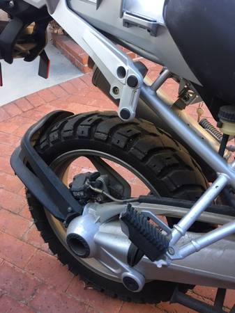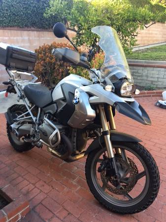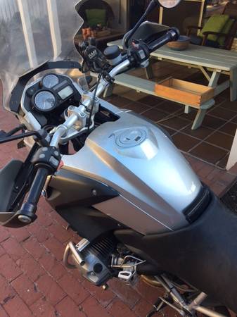 This BMW R 1200 GS has minor dings on the rims, the tires are at 40%, and the windshield needs polishing; otherwise, everything works fine.