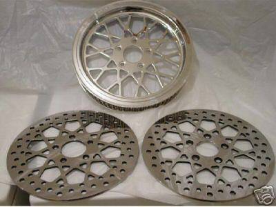 New chrome wheel and billet hub with stainless steel spokes. Includes spacer, bearing, Sealed spokes makes this wheel great for tubeless applications. Fits 99 and back Applactions with Single front Disc. pulley 65t or 70t 1.5 or 1.125 width and front and rear show polished rotors