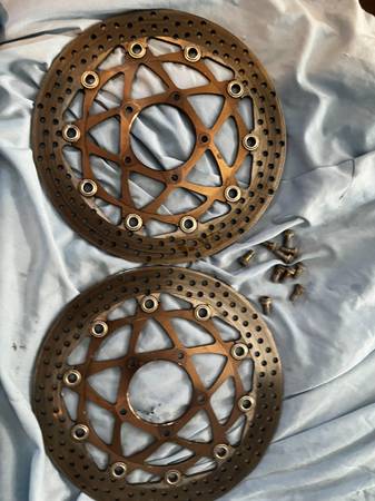 AS PICTURED, FRONT WHEEL, REAR WHEEL NISSM CALIPERS WITH STAINLESS LINE, TRIPLE CLAMP ...WILL SELL PICECES OR COMPLETE (REMOVED TIRES ) FRONT END COMPLETE AS SHOWN...TRIPLE CLAMPS $185.00 ROTORS $175.00 , NISSM F4 BRUTALE 750 1000 CALIPERS $200 , WHEELS , FRONT $325 AND REAR $235 ... OR BEST OFFER...WILL SELL ALL OR PART...LETS TALK show contact info