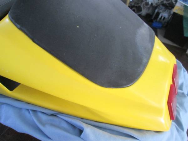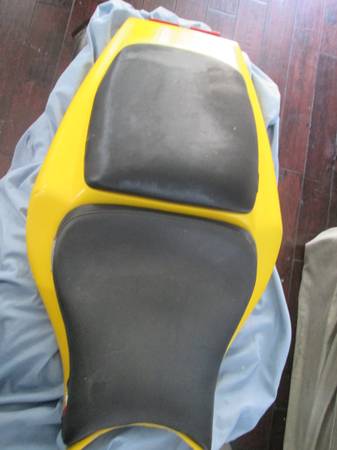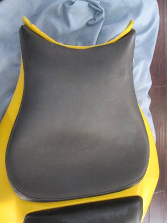AS PICTURED IS A YELLOW DUCATI 1994-2004 COMPLETE BIPOSTO SEAT ASSEMBLY...INCLUDES EVERYTHING AS PICTURED....DRIVERS SEAT IS CORBIN REAR IS STOCK..INCLUDES THE HARD TO FIND $200 REAR MOUNTING BRACKETS, TAIL LIGHT ASSEMBLY...THIS IS READY TO BOLT ON...REAR FOOT PEGS ARE ALSO AVAILABLE..PHONE CALLS ONLY