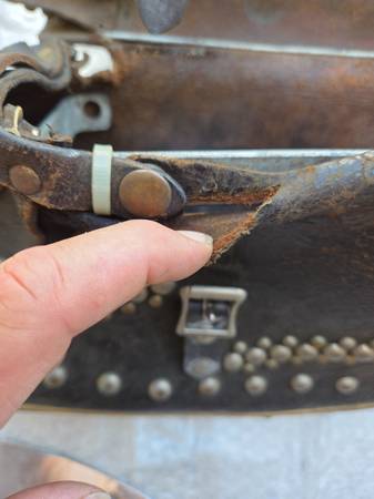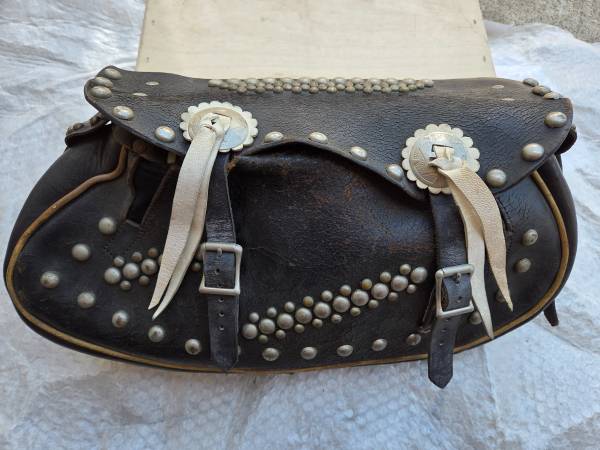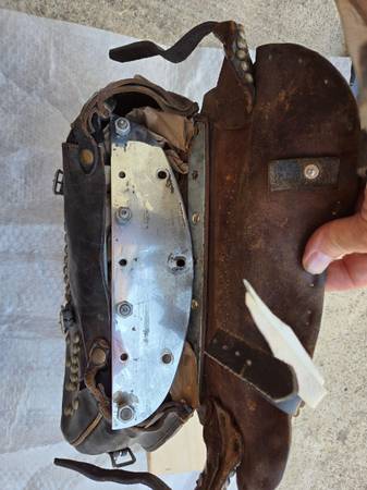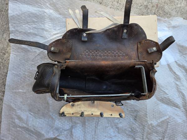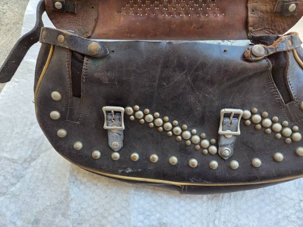 Vintage Indian Motorcycle Bike Leather Saddle Bags I was told came off the last of the Indians. See photos. $800