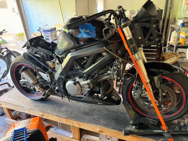 I have all the parts to put it back together. Including replacement gas tank (With one small dent) I also have new foot pegs, gearshift, handlebars, new sliders and replacement controls.