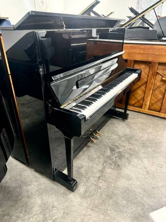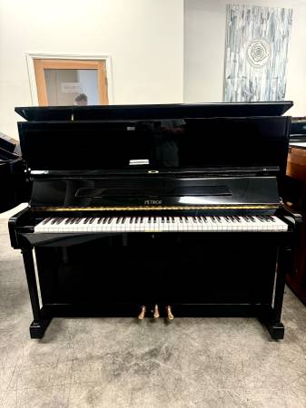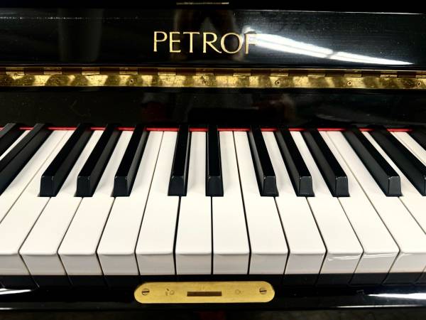 Beautiful Petrof P131 Tall Upright Piano. This piano features a polished ebony finish and straight-style legs. The tall upright size is ideal for musicians and allows for the best sound available to an upright piano. This piano has a fantastic touch and excellent sound. Inquire about this product today!