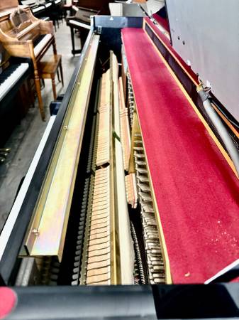 Beautiful Yamaha MX100 Upright Piano, featuring a polished ebony finish. The tall upright is the largest size of upright available, giving it an incredibly rich tone and resonance. Yamaha is world-famous for its bright, clear and crisp tone and excellent touch. The MX100 is comparable to the highly sought-after U1 with an added built-in player system. This piano will not last, so be sure to inquire today!