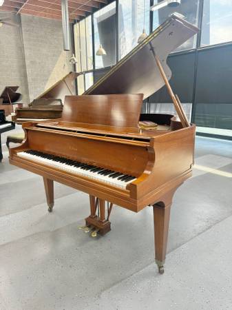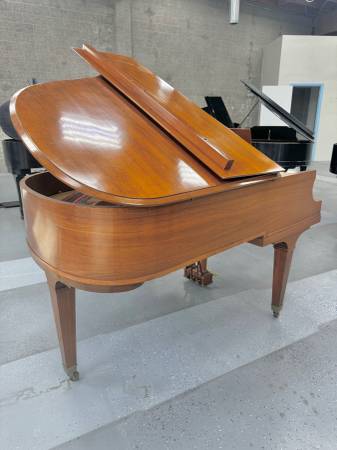 Beautiful Baldwin R Grand Piano. This stunning medium-sized grand piano features a gorgeous satin walnut finish and straight-style legs with brass ferrules. It has an exceptional tone and touch, making full-use of its fuller grand size. This piano is sure to look amazing in your home, so inquire today!
