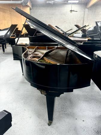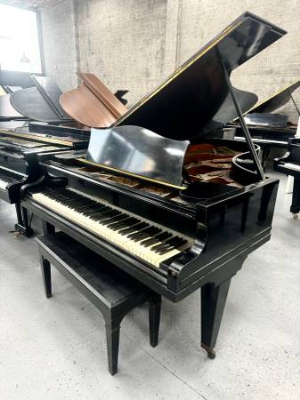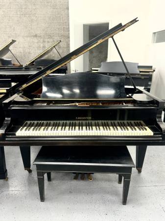 Lovely Bechstein C Semi-Concert Grand Piano. Bechstein is world-famous for finely-made European pianos and a staple in the professional music industry. The semi-concert grand is one of the largest sizes of pianos and allows for exceptional resonance and clarity. This piano features a polished ebony finish and straight-style legs. It has some age-related wear, but is in perfectly-playable condition. This piano is sure to be a welcome addition to your home!