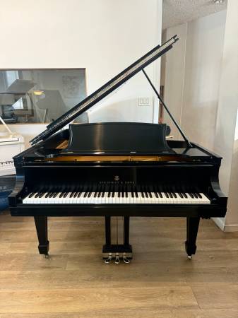 Beautiful Hanover Steinway B Grand Piano. The semi-concert grand is one of the largest grand pianos available and favored amount professional studios and concert halls. Steinway is world-famous for its technological patents and finely-made, handcrafted pianos. This piano features a beautiful satin ebony finish and spade-style legs, and has been fully-restored in excellent condition! This piano is sure to please even the most discerning of musicians, so inquire about it today!