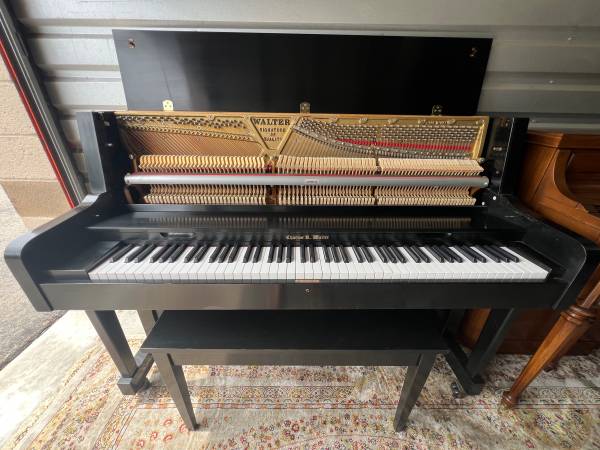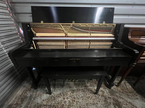 If you’re looking for a truly special upright piano—one that blends rich tone, lasting craftsmanship, and American-made quality—this Charles R. Walter Studio Upright is an absolute gem.