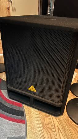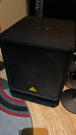 Behringer 18" Passive Subwoofer with casters in good shape. Pole mount on top is cracked as seen in pic, but otherwise fine. $125