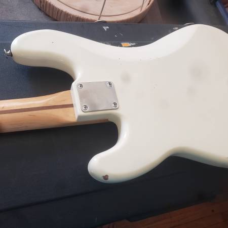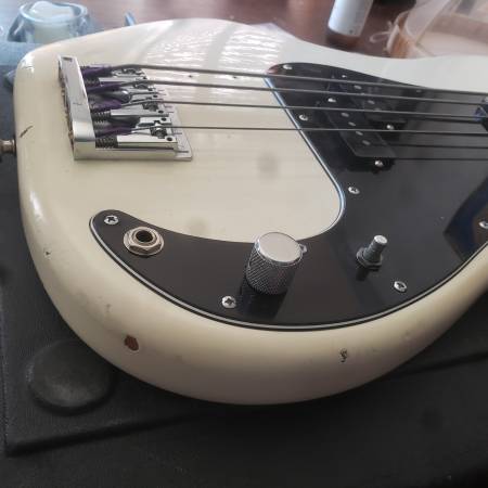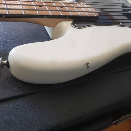 Very light. 8.2 lbs. Eb flats. This bass sounds as good as it looks. No case