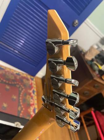 No deep scratches, chips or dings. Intonated with no dead frets, which are also in great shape. Original Floyd Rose and Seymour Duncans. Comes with original hardshell case.