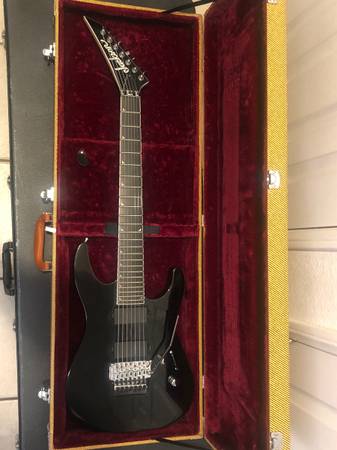 Used 7 string Jackson Soloist guitar. Equipped with active EMG 81/60-7 set pickups. Some minor dings then and there. Guitar plays great. Comes with case.