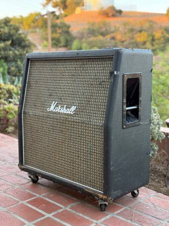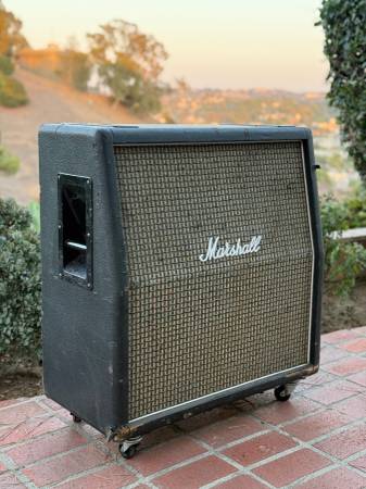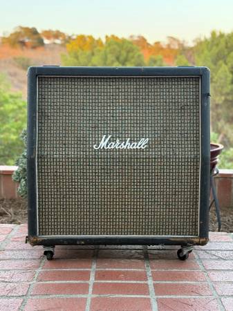 A Marshall 1960 AX cab with stock UK made Celestion Greenbacks. 100 watts, 16 Ohms, built like a tank in 2001. Cosmetically it has survived years of touring and is still serving up amazing tones. 100% in working condition, no issues, just good vibes. Trade you for something cool