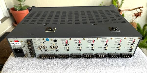 This unit appears to be in good working order. It was removed from an Audio Rack in a restaurant that shut down. This amplifier was mounted in the rack, but not connected to loudspeakers. It appears the system was upgraded to a multi-zone configuration, so this amplifier was no longer in use. The Security Cover is a Plexiglass Cover that has a slight "smoked" tint and it prevents outsiders from changing settings.