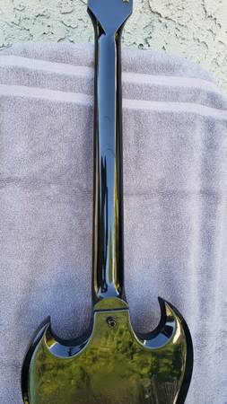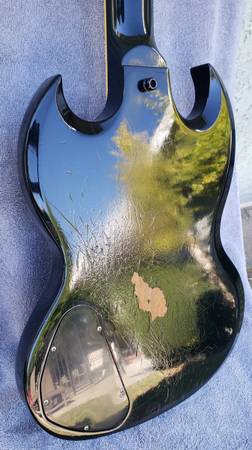 He wore a spiked belt buckle when he performed and that's how some of the black paint on the back of the guitar came off, but it doesn't affect the guitar's sound quality.