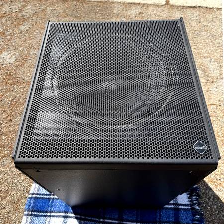 Up for sale is AN INTER-M MODEL NLA-15S SINGLE 15'' COMPACT 600W SUBWOOFER WITH STEEL FLYING/RIGGING FRAME ATTACHED. This was a Sales Sample that has been used only once and I was the one who used it at a Holiday Pageant. It is in almost perfect condition. I only have the one speaker and it is a discontinued model. It would be great for a Band or DJ performing at small-to-medium events to add some solid low frequency energy to their system.
