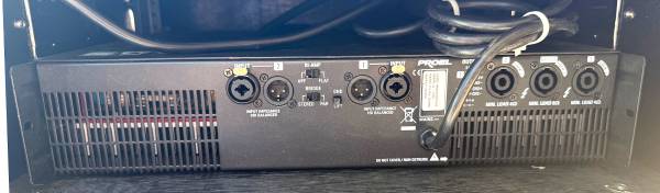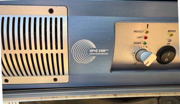 Up for sale is a USED POWER AMPLIFIER, PROEL MODEL HPD 3400, 1700-WATTS P/C AT 4-OHMS. It delivers 1100-Watts per channel at 8-Ohms and 3400-Watts in the Bridged Mono Mode. This amplifier is in excellent condition, having lived in a solid amp rack since I purchased it. I am the original, one and only, owner. I would use it to drive my Subwoofers when I was actively providing sound reinforcement services for small and medium events, but I haven't used it in a few years as I have phased out of that business. Better that it find a new home and someone that can put it to use than sit in storage.