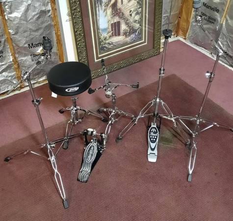 None of the cymbals have any cracks or keyholing in them. The ride and hats are like new, the crash is in excellent condition and the splash is the only one that looks well used. All of the chrome is in excellent condition with no rust, both on the hardware and the drums. All of the stands and the seat are pretty much still like new.