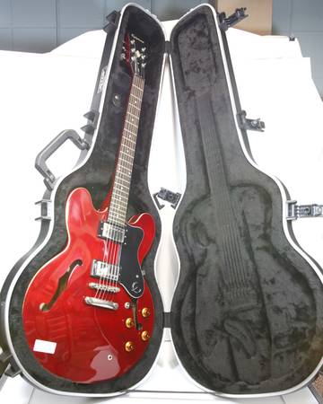 I am selling this *CLEAN* - EPIPHONE ES 335 DOT 2013 CHINA HOLLOW-BODY ELECTRIC GUITAR. This is a very clean guitar, used a few times, and stored in its protective case for the remainder of its life. It comes with an SKB hard case, and works perfectly. Please feel free to call or text with questions show contact info