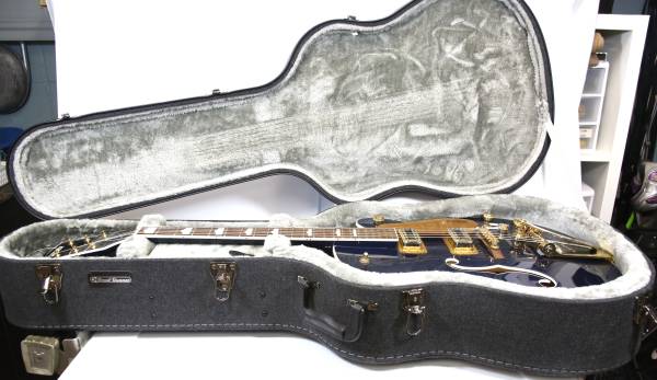 I am selling this *CLEAN*- GRETSCH G5427TG ELECTROMATIC LIMITED BIGSBY ELECTRIC GUITAR. This is a very clean guitar, used a few times, and stored in its protective case for the remainder of its life. It comes with a Road Runner case, and works perfectly. One of the tuning knobs is a little bent, probably from it hitting something, but still works well. Please feel free to call or text with questions show contact info