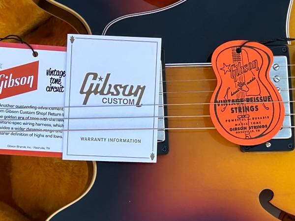 Gibson paid just as much attention to the 1964 ES-335 Reissue's electronics as they did to its aesthetics. Beginning with CTS 500K audio taper potentiometers and paper-in-oil capacitors, every part of this semi-hollowbody electric guitar’s internal signal path was designed to give you absolutely dead-on 1964 ES-335 tone. Of course, it's next to impossible to find genuine '50s PAFs (even for Gibson). Instead, the 1964 ES-335 sports a pair of unpotted Custombucker humbuckers. Boasting Alnico III magnets, Gibson’s Custombuckers are one of the most historically accurate PAF copies ever. You just won't find another ES-335 that comes as close to the original look, sound, and feel of a 1964 ES-335.