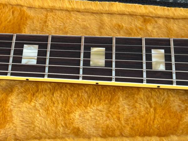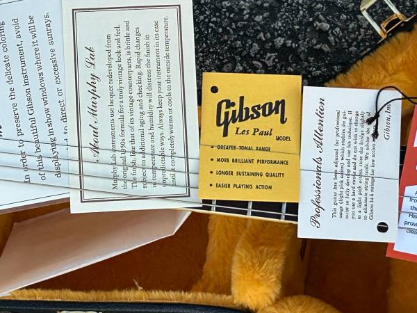 Gibson Custom's Vintage Original Sheen finish option comes standard on Custom Shop Historic Reissue models. The VOS finish package includes lightly aged parts that impart an authentic vintage patina. The nitrocellulose finished it buffed to a light matte appearance, giving a look and feel of a guitar that has been lovingly played and cared for over the years.