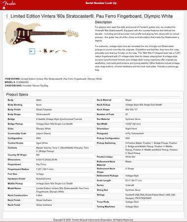 Model Name - Limited Edition Vintera '60s Stratocaster®, Pau Ferro Fingerboard, Olympic White