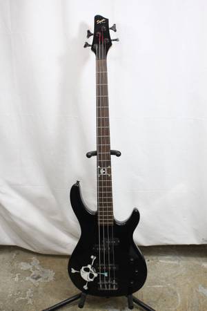 We are selling our Squier Skull Electric Bass Guitar MB4. This bass guitar was crafted in Indonesia. Please call or text with questions . Please reference Stock # 61806 when you call. ppc