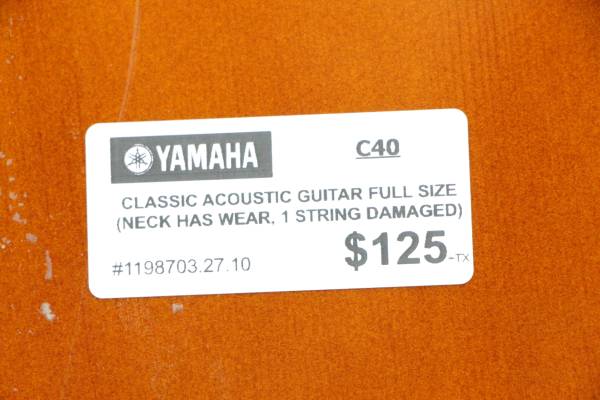 We are selling our Yamaha Classic Acoustic Guitar C40. This acoustic guitar has heavy wear on the neck, has a damaged string and scratches/dents all around body. Please call or text with questions show contact info