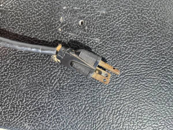 Doesn't have a handle and there is wear to the power cable but it is fully functional. Has some light wear from use but in great shape for it's age.