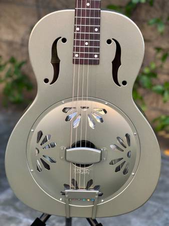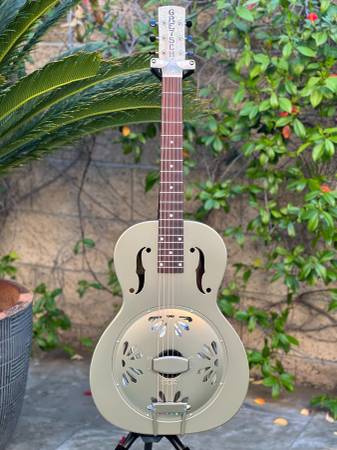 Gretsch's Roundneck Honey Dipper Resonator features tasteful vintage appointments that would look right at home in the company's catalogs of yesteryear. With the G9201, you get a stunning all-brass body with a finish that not only looks great but enhances the instrument's tone. A gorgeous mahogany neck with padauk fingerboard responds beautifully to chords or a slide, letting you explore the sounds of early country, blues, and folk as well as your own contemporary sonic visions. The simple biscuit cone design of this resonator just oozes old-timey vibe and makes you happy they do still make a classic instrument like the G9201.