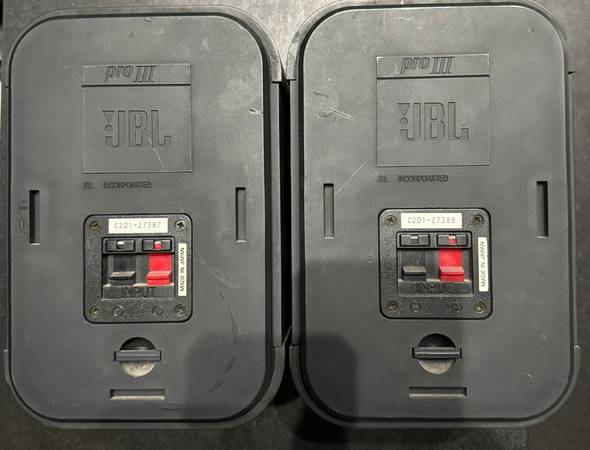 JBL Pro III Indoor Outdoor speakers are in good condition. While they can be used outdoors, you will need to get mounting hardware if you want to attach them to a wall, etc.