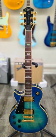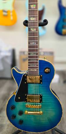 Unleash your inner rockstar with the AIO Wolf WLP 750T Left-Handed Electric Guitar - Blue. This stunning instrument, crafted for left-handed players, features a timeless single-cutaway design and a beautiful AAA flamed maple veneer top. Its solid mahogany body and ebony fretboard ensure a rich, resonant tone that's perfect for genres like rock, blues, and jazz.