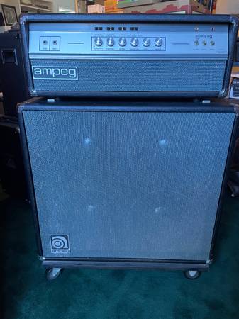 Time passed. I now accept that, most likely, I probably will not be sitting in for Joe Bonamassa, Joe Satriani or Keith Richards any time soon, and so, have decided to sell what is essentially a time capsule; an almost new, unused Ampeg 100 watt V-4 head with Ampeg integral Reverb and Master Volume Pedals, Ampeg 4-12 speaker cabinet, original covers (plus one new cover), and all required cables.